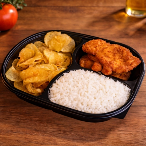Frango a Milanesa Arroz, Feijão, Farofa + Complemento